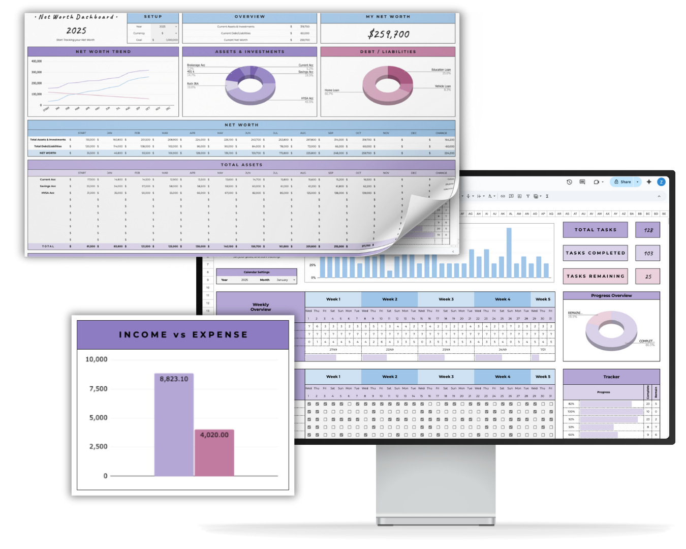 Every template meticulously and intentionally designed to look clean and feel effortless, turning confusing spreadsheets into clear, calming visuals — so you can save time and energy for the things that really matter in life.